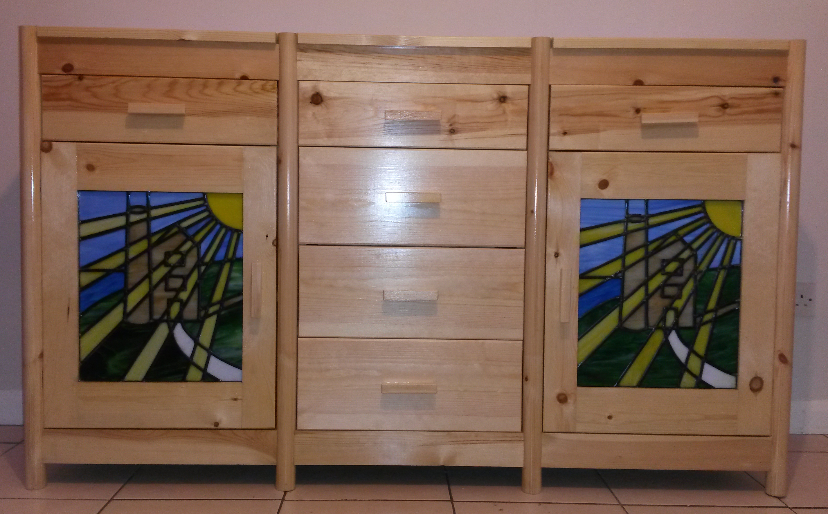 Dinning room wine cabinet made to match the stain glass doors of the other cabinet.