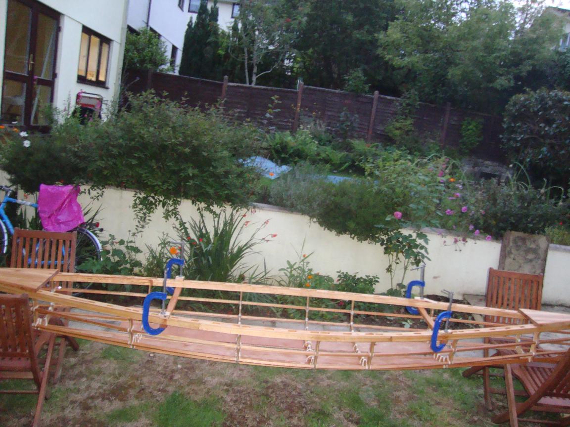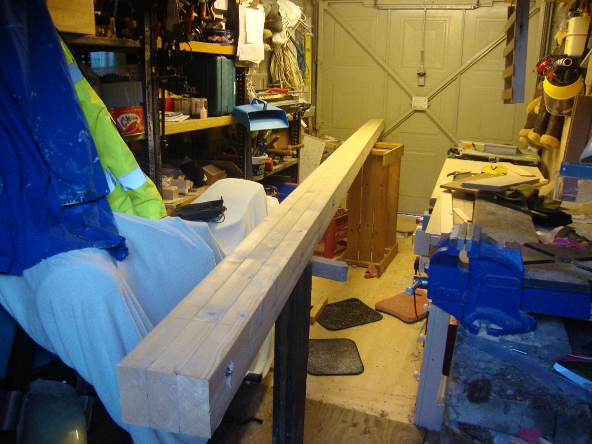 The strong back was constructed from 3 5.2m 2" x 4" bolted together.