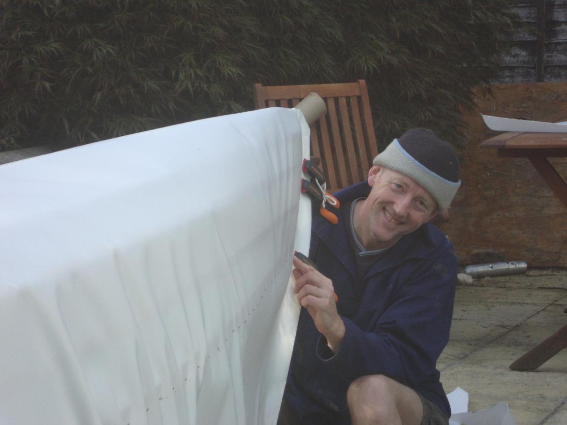 How can I staple the edge of the Dacron to the outer gunwale with my eyes shut.