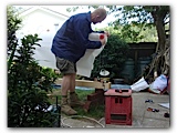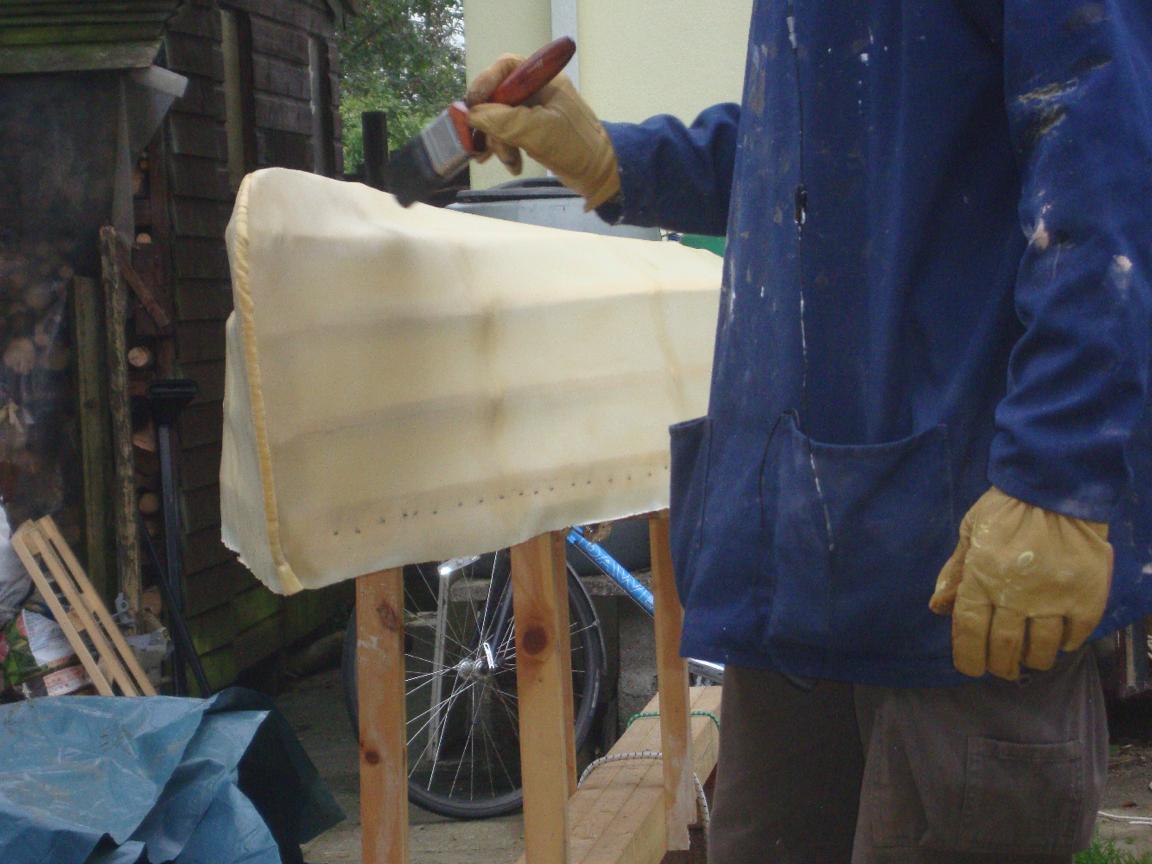 Here goes the first coat, it is a bit patchy. I hope the rain will hold off.