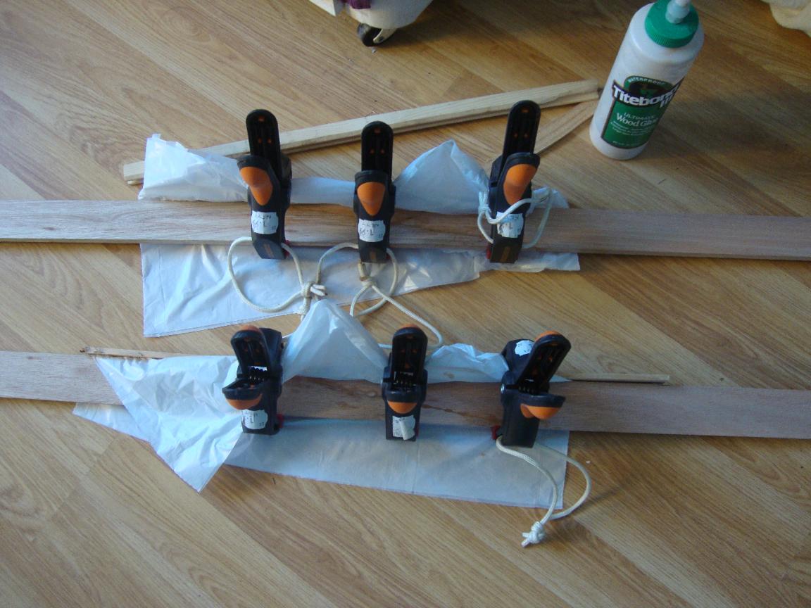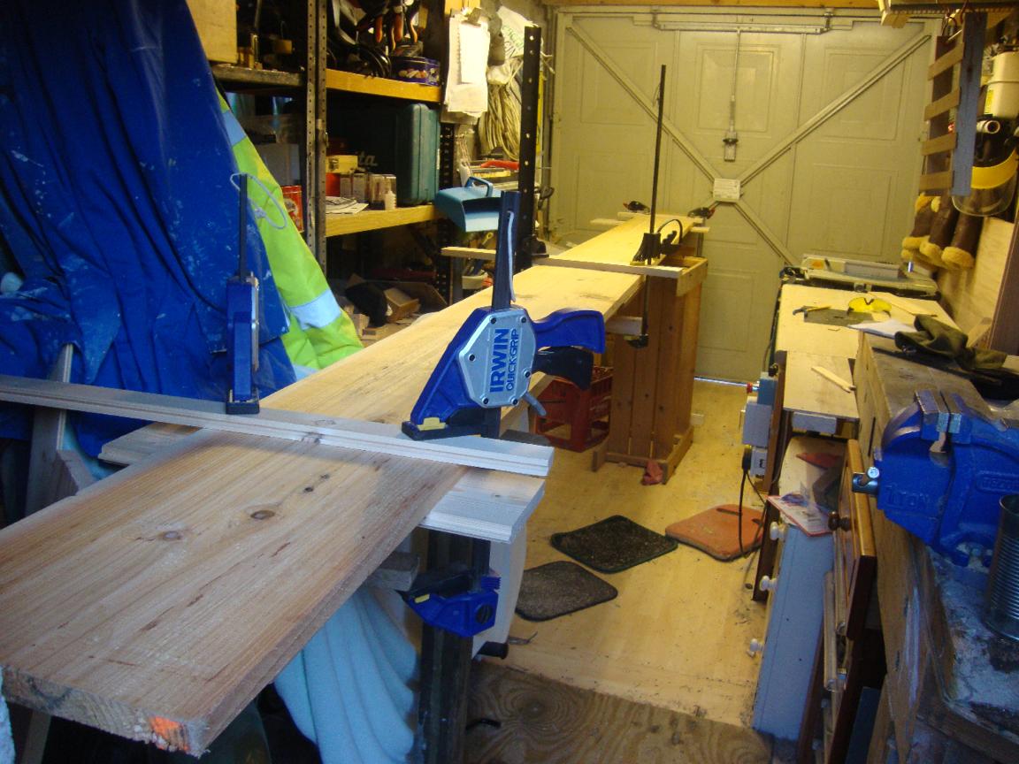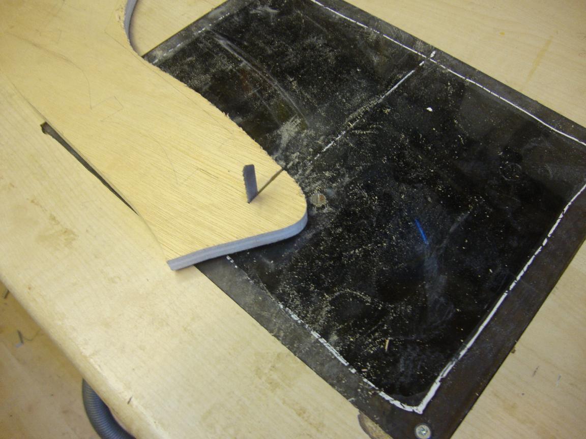 My table saw jig, to cut my stringers at a sharp angle, to give the greatest surface area for the glue