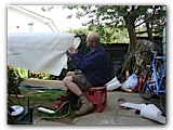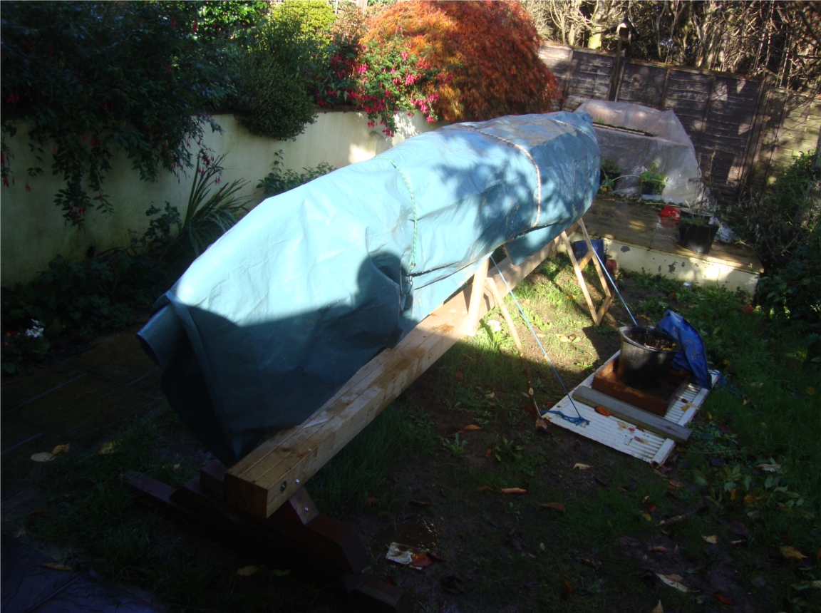 winds and rain. The canoe is stored out side on two home made trestle as I have not got the room in