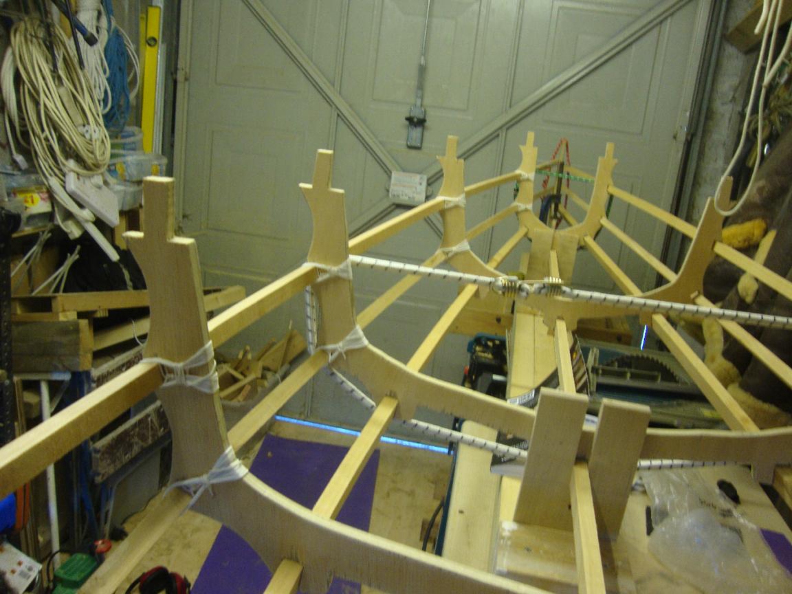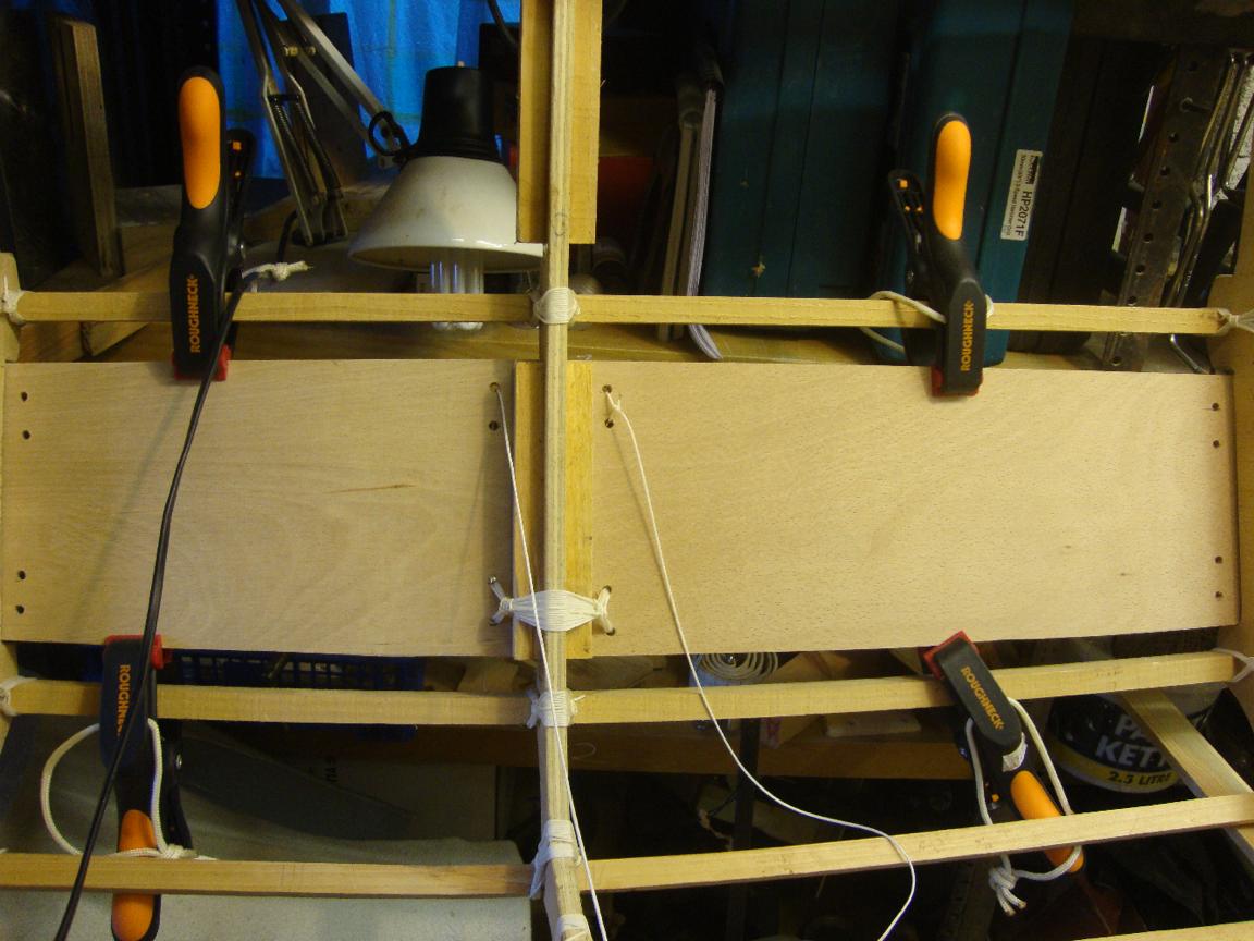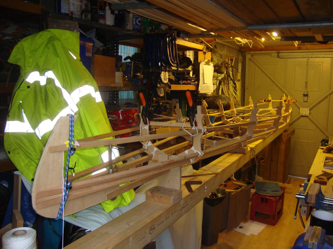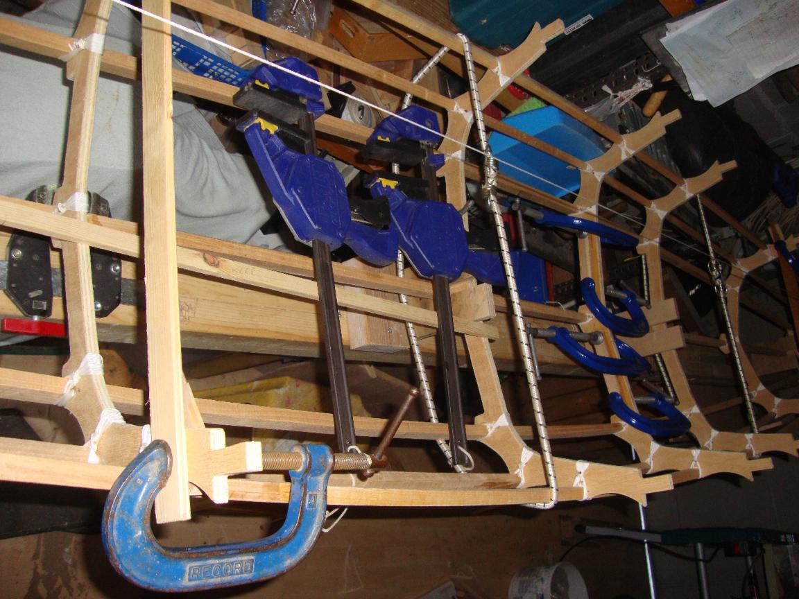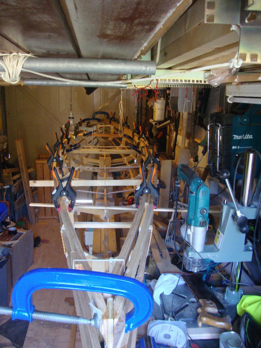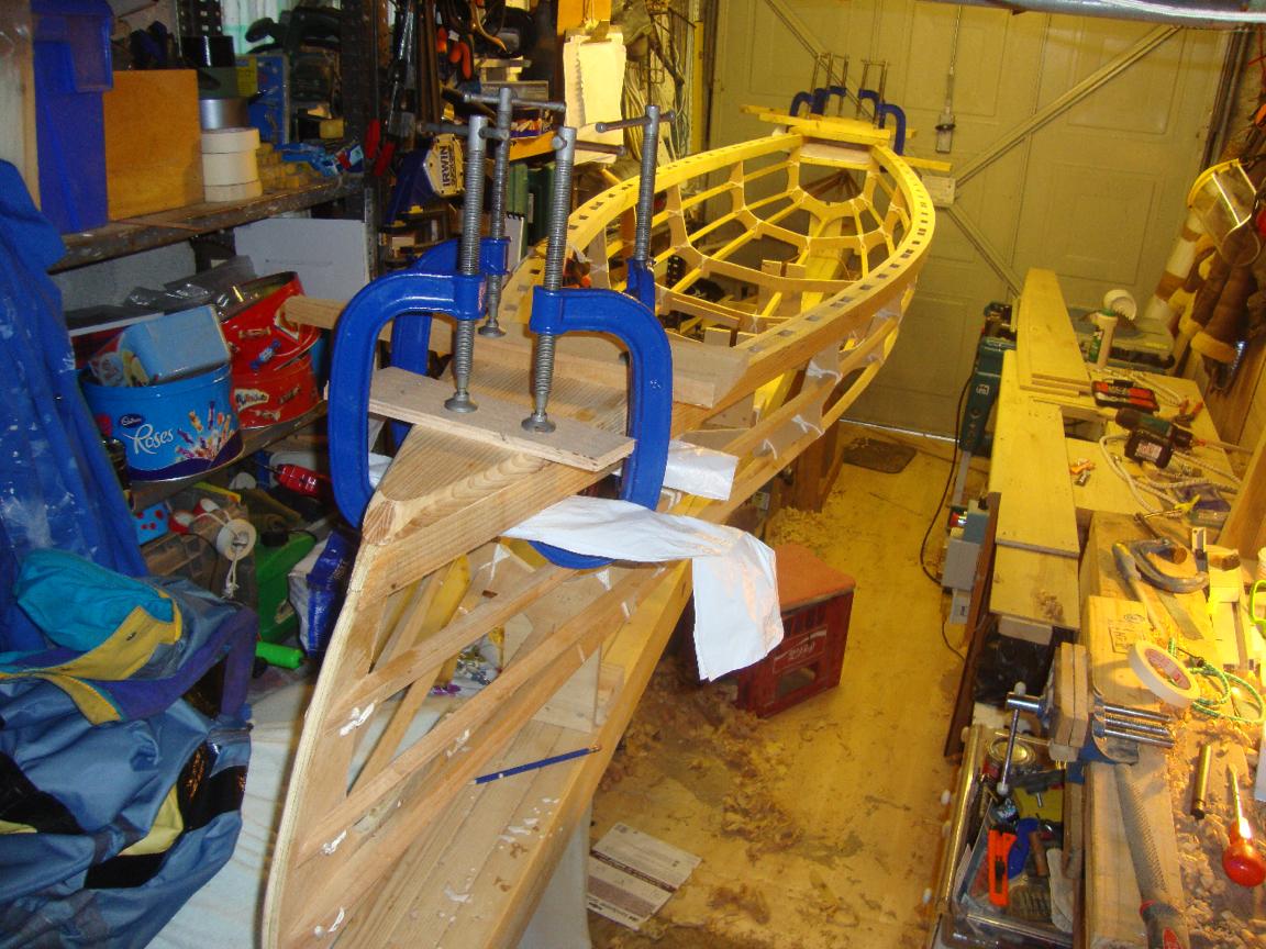 Screwing the outer gunwales on with brass round head screws on each spacer block.